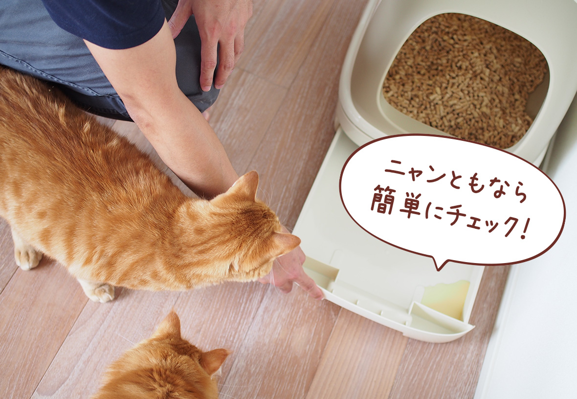 大切な猫ちゃんのために、オシッコチェックを習慣に!猫ちゃんのオシッコには健康情報がいっぱい。ニャンとも清潔トイレなら簡単にオシッコチェックができます。