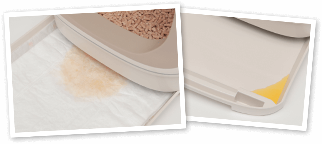 猫ちゃんが一カ所でオシッコをしても全面に広がり、たっぷり吸い込みます。だからトレーにオシッコが漏れません。