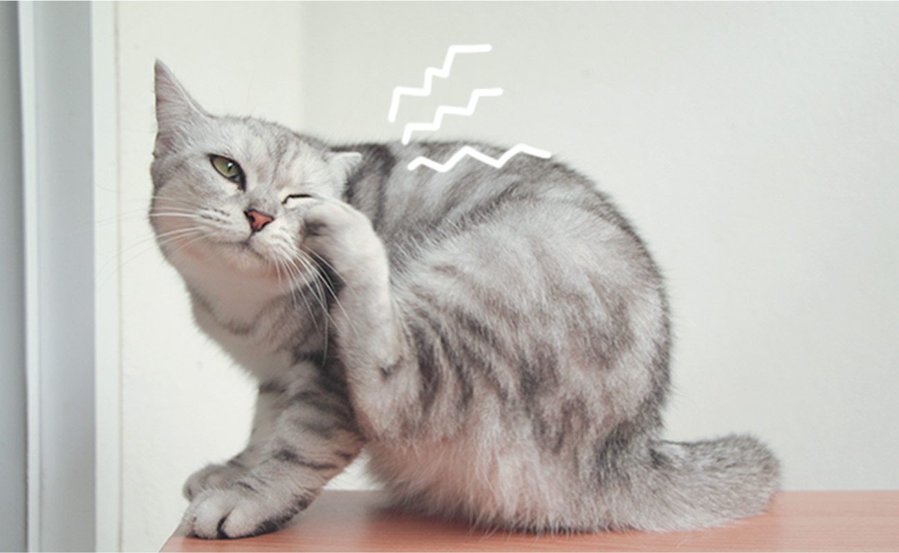 猫がノミに刺されると、激しいかゆみと湿疹、脱毛などが見られる「ノミアレルギー性皮膚炎」が起こることがあります。完全室内飼育でも、飼い主がアウトドアレジャーをしたり外猫と接触することによって、屋外から持ち込む可能性があるので注意してください。