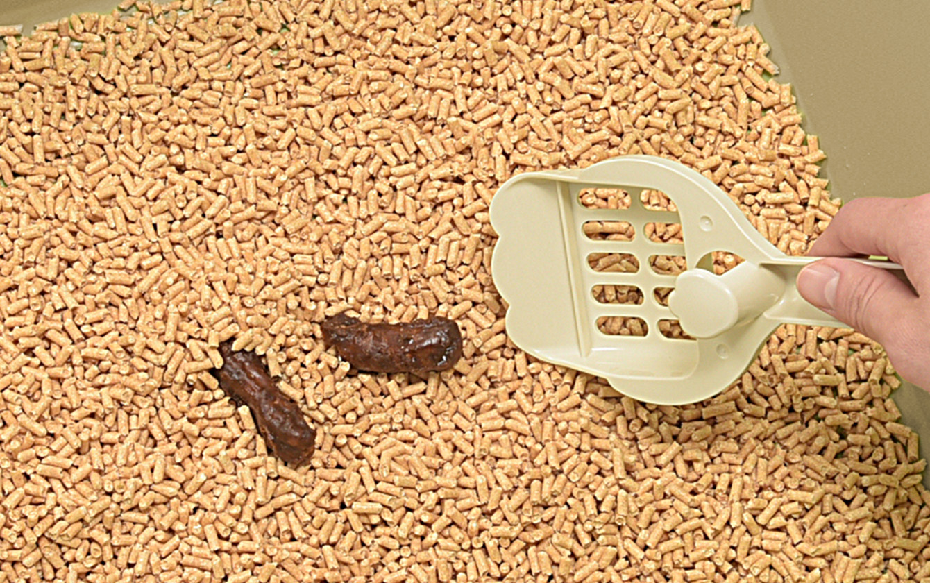 ウンチおよび汚れたチップを、スコップやティッシュ等で取り除いてください(ウンチはなるべく早く取り除いてください)。