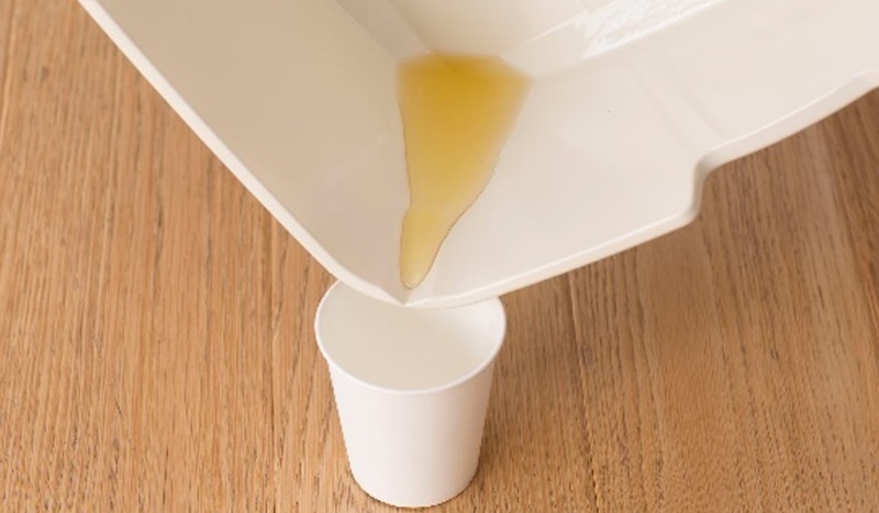 注ぎ口が付いているので、色や量など、より正確に状態を把握したい場合は、計量できる容器等に簡単に移し替えることもできます。