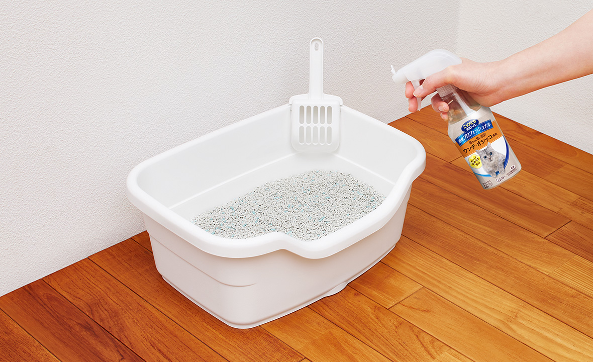 ニオイが気になるトイレ周りや発生源である猫砂にも直接スプレーすることができ、ニオイを元から徹底消臭できます。